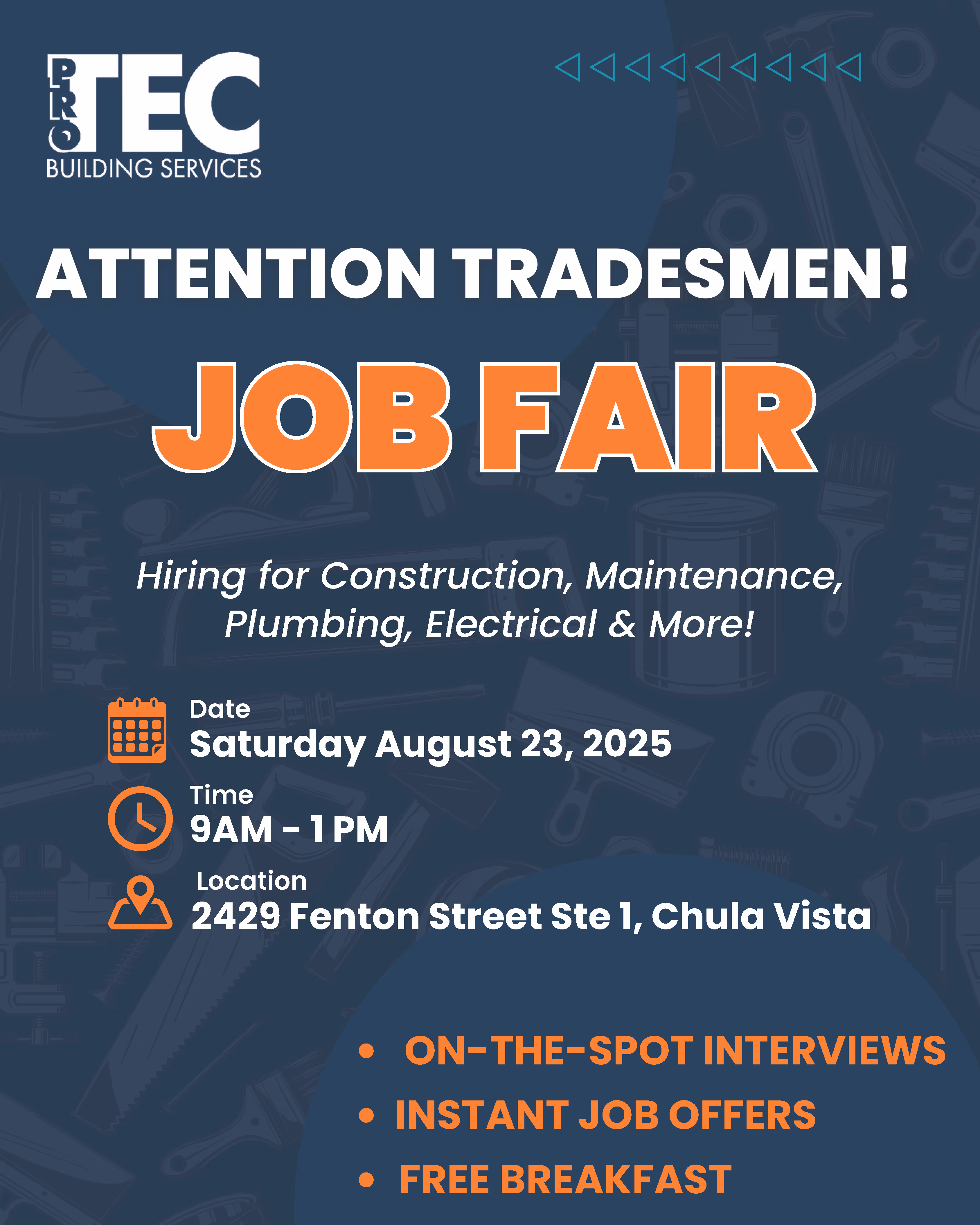 Looking for your next career opportunity in San Diego? We are excited to host our first Job Fair on Saturday, August 23rd, from 9:00 AM to 1:00 PM at our Chula Vista office.