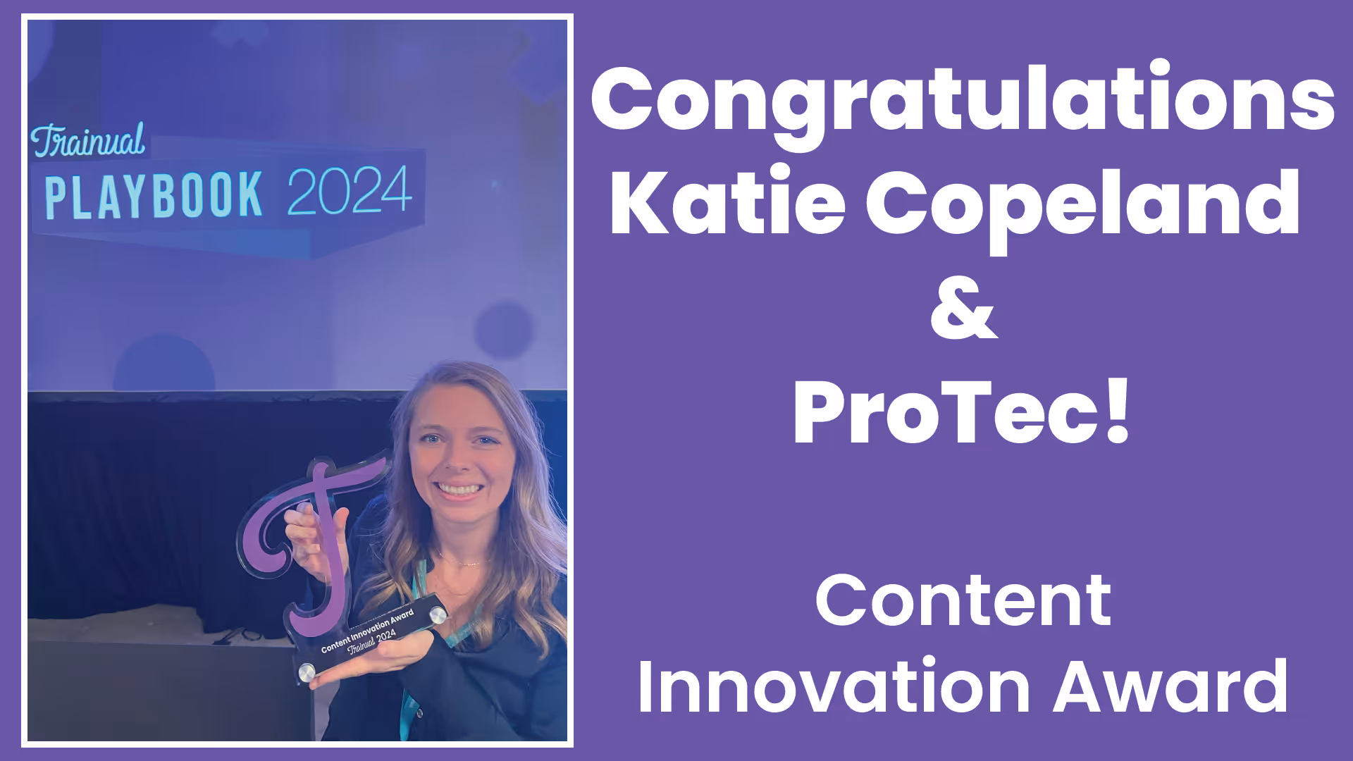 This week, some of our team headed to Phoenix for the Trainual Conference (our new training platform), and we’re thrilled to share some exciting news! Our very own Katie Copeland took the stage to deliver an incredible presentation on how she’s enhancing our training platform to better support our employees and drive company growth. The best part? ProTec earned the prestigious Content Innovation award! A huge congratulations to everyone who contributed to building these trainings, and a special thanks to Katie for leading the charge. We’re so proud of this achievement!